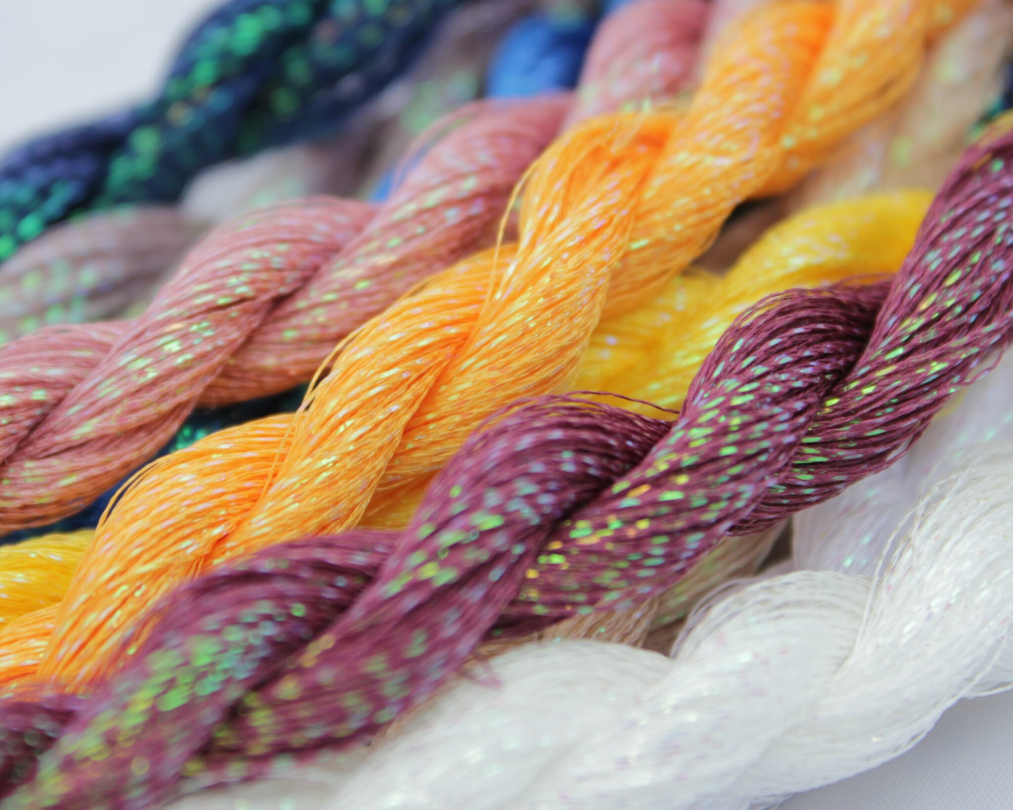 The special thing about our fancy yarns is that they are perfectly adapted to the schiffli industry and thus have excellent running properties. We have made them as soft as possible so that they can also be used in the very sensitive lingerie fashion industry. We have put together a selection of 74 colors for you, which we can offer you from stock without minimum quantities.